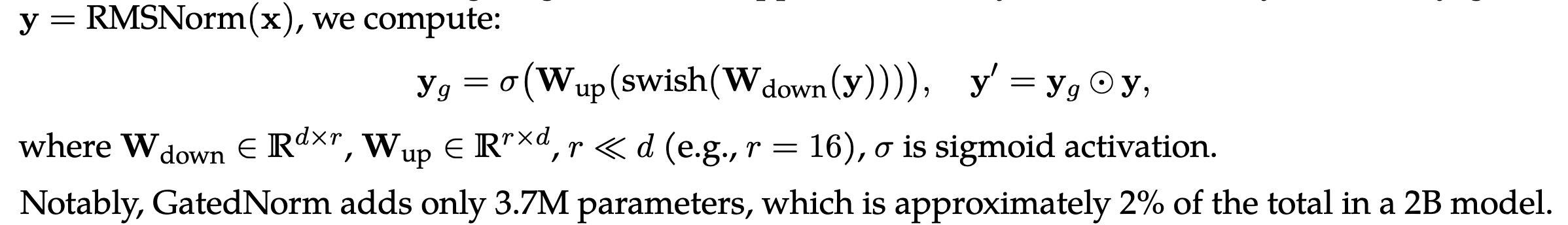 重点:提出了 GatedNorm来优化RMSNorm。动机是发现网络中会有很多极大的激活(原因是来自于RMSNorm的机制)。GatedNorm可以一定程度上稳定激活,提升量化精度(因为极大的激活就会造成量化的困难)同时侧面解释了为什么SwiGLU的表现通常要比GLU好。
