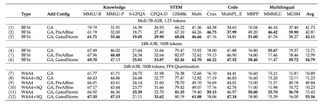 同时,在低比特量化的时候,+ GatedNorm 表现也更好: