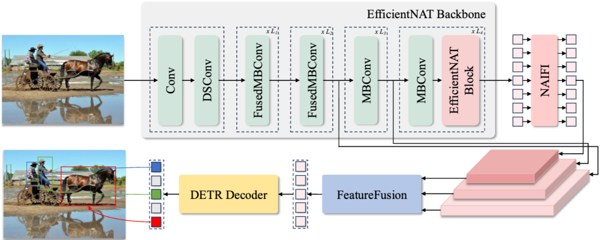 EfficientNAT = Conv + depthwise separable convolutions (DSConv) + Fused Mobile Convolution (FusedMBConv) + Mobile Convolution (MBConv) + EfficientNATBlock + NAIFI