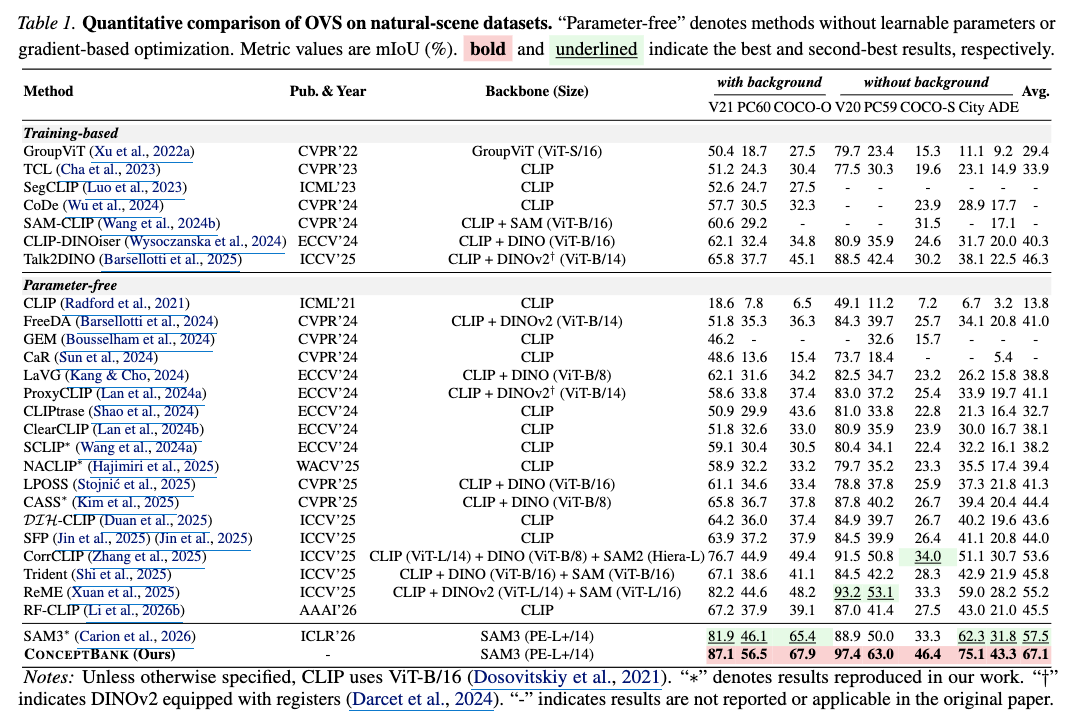 d. Taming SAM3 in the Wild: A Concept Bank for Open-Vocabulary Segmentation https://arxiv.org/pdf/2602.06333
