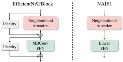 其中,NAIFI 就是 NAT+FFN,EfficientNATBlock 就是 residual NAT + residual MBConv