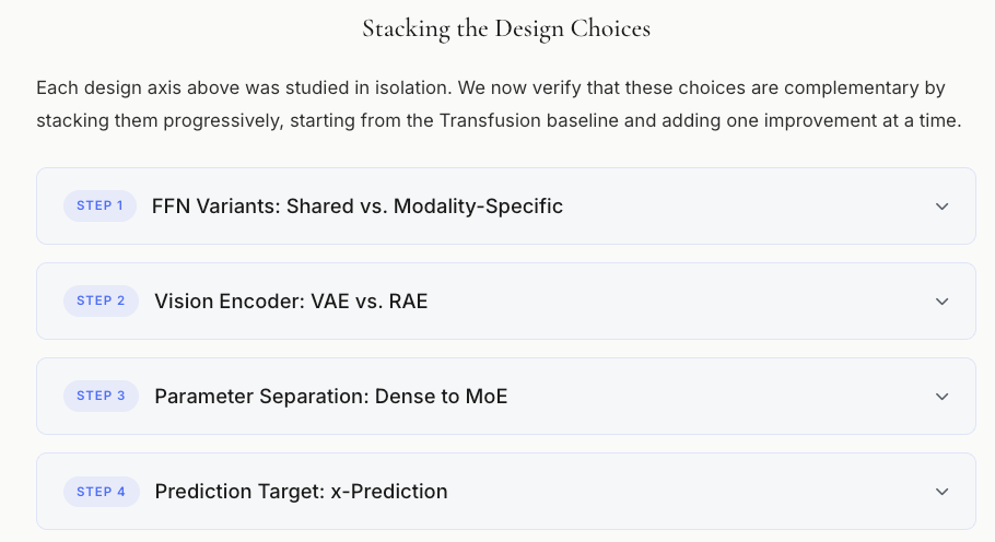 TLDR:多模态预训练中 MoE 和 RAE 是两个 work 的东西。主要做了以下实验: