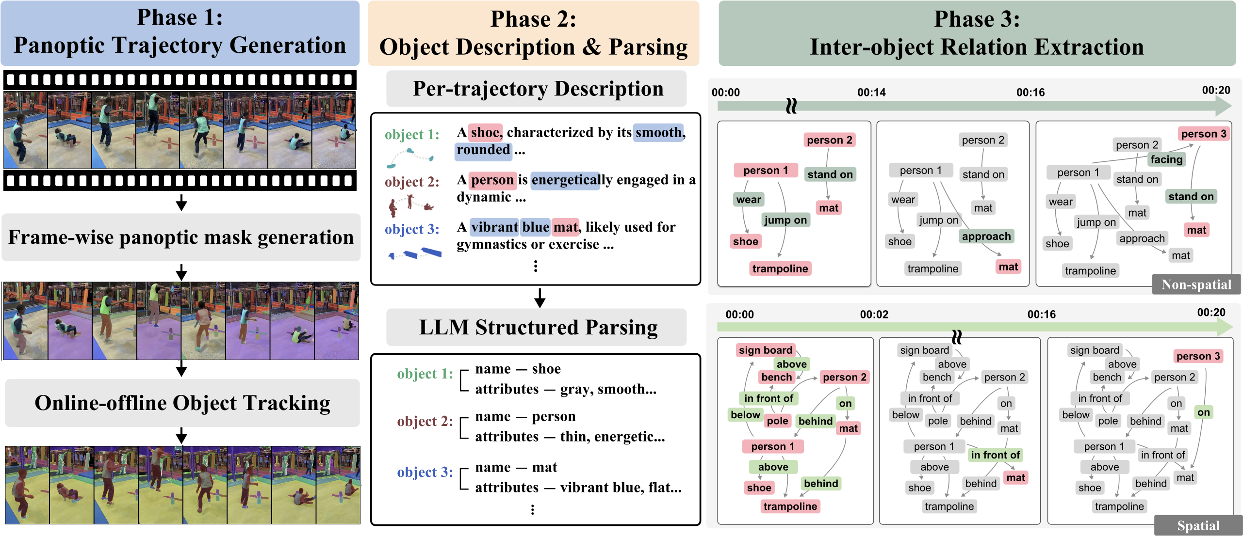 全自动化的流程集成了 SAM2、DAM (describe anything) 和 GPT-5,以生成密集的、具有时间相关性的 video scene graphs :